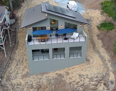 Even though the property poses many challenges—a 40 degree steep slope on a lake, remote community, lots and LOTS of rocks, and very little space for staging equipment—PHNX has overcome all difficulties to deliver this home on time and on budget. There have been no less than eight wildfires, of varying degrees and intensities, within a 10-mile radius of the project, just during the first five months of construction. The wildfire threat is real, and PHNX Home owners enjoy a peace of mind that no other home builder can offer.